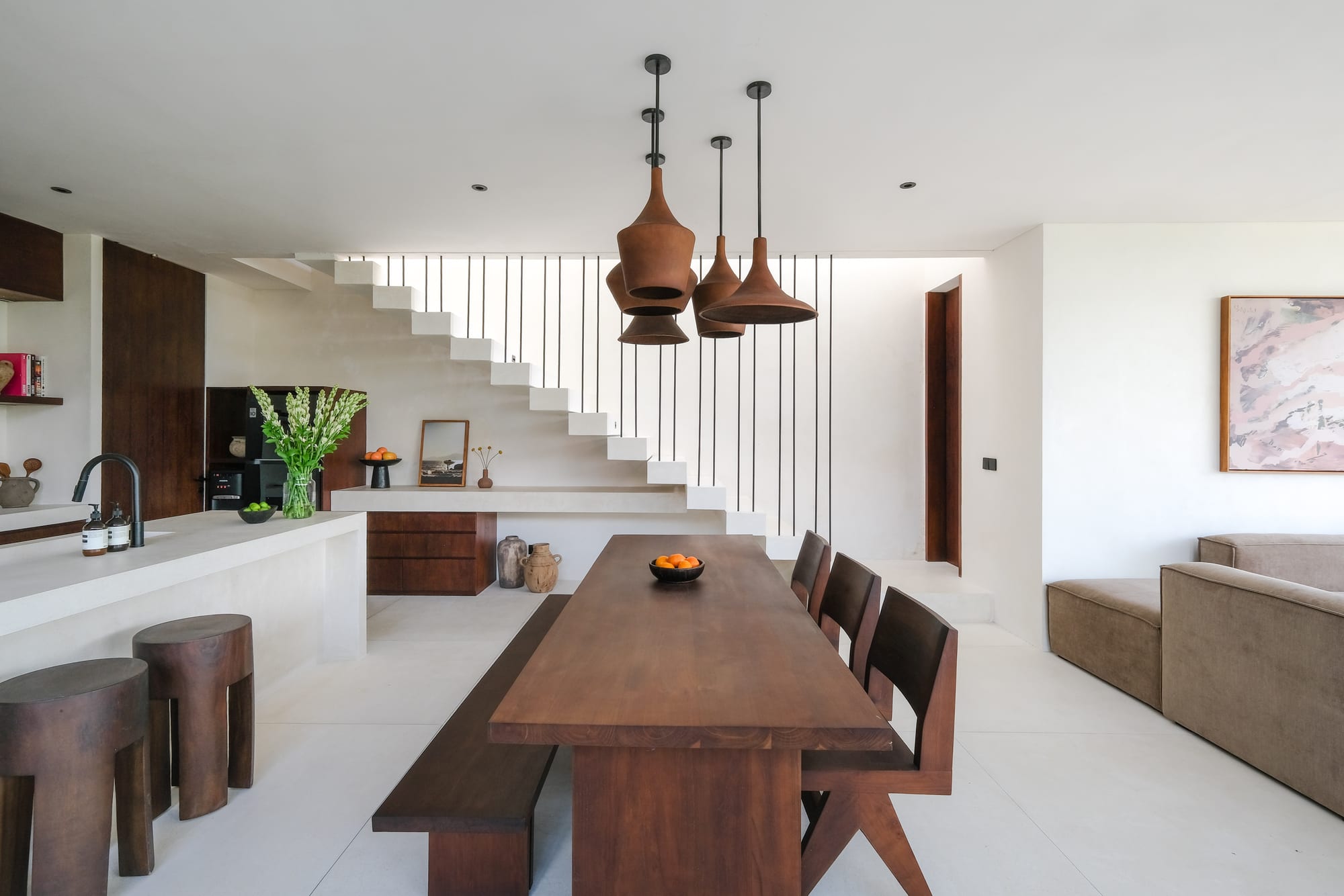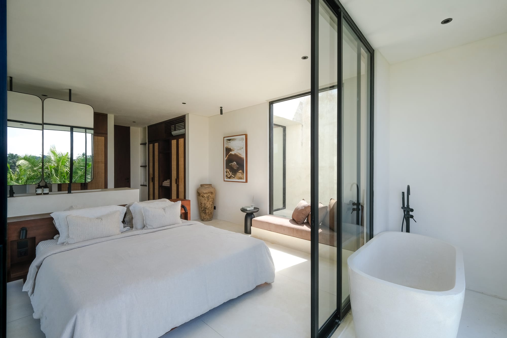 Just 10 minutes from the famous Tanah Lot, this villa features a minimalist contemporary design with soothing views of endless rice fields.